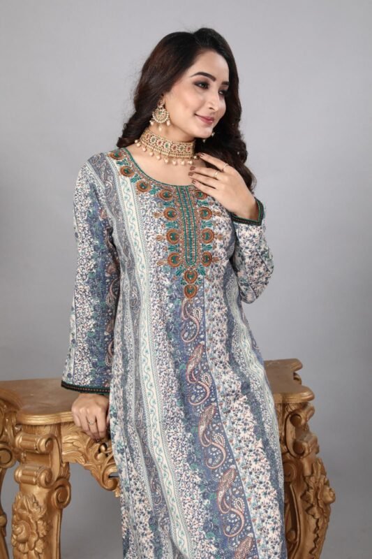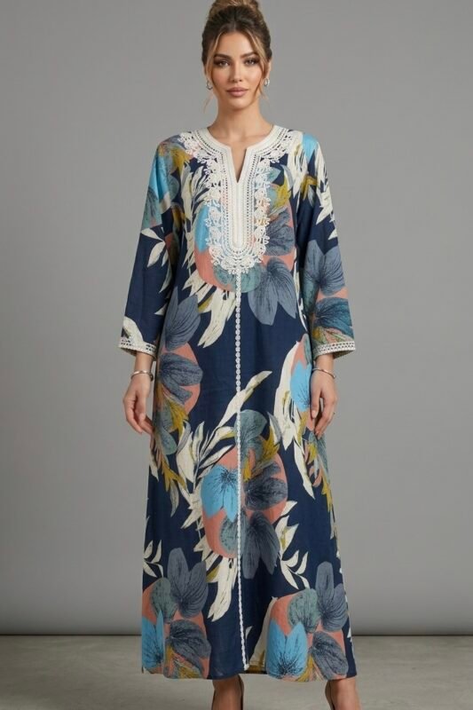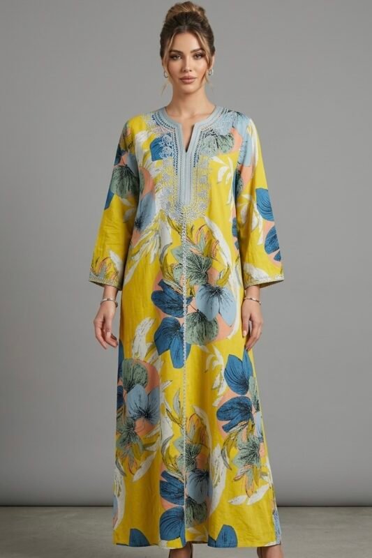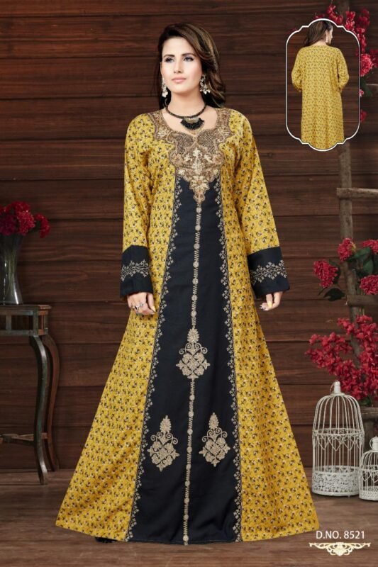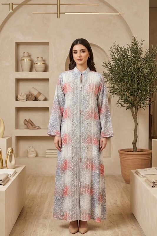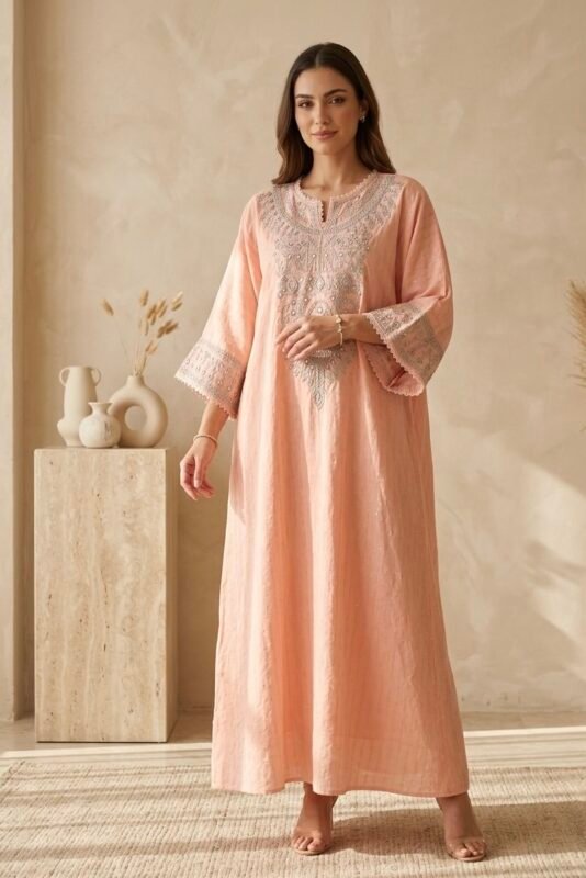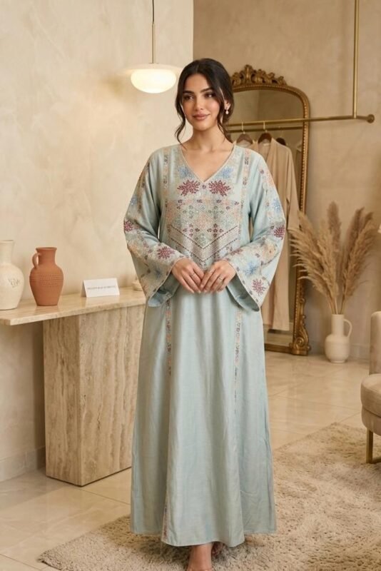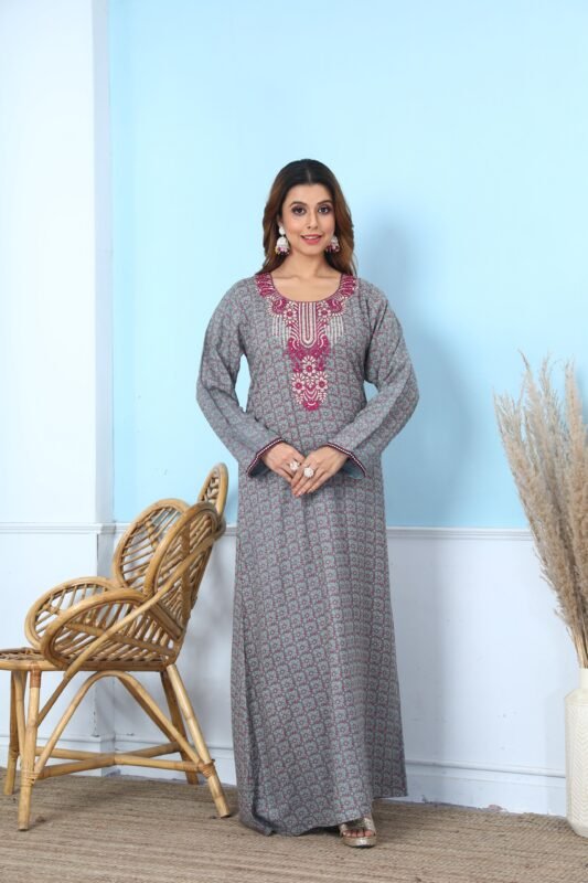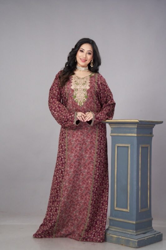 جلابيه كشميري بتطريز لون تفني كم طويل