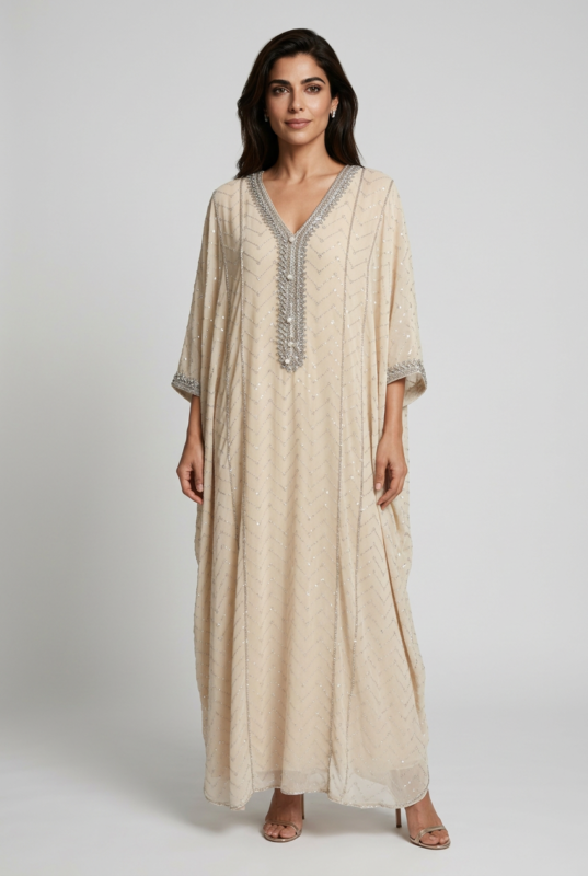 جلابيه بقصه واسعه بفصوص صغيره فضية