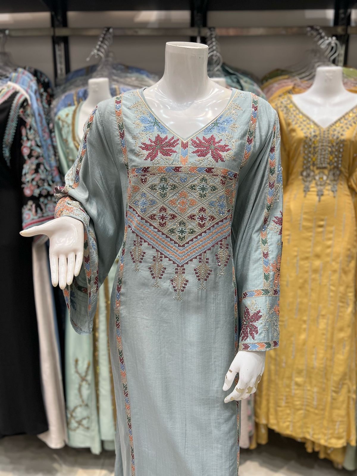 جلابية كويتي تطريز فضي كم حيران