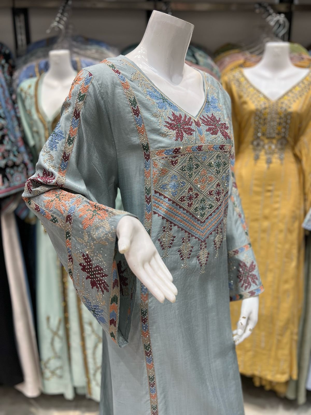 جلابية اردني تطريز بفصوص لون تيفني