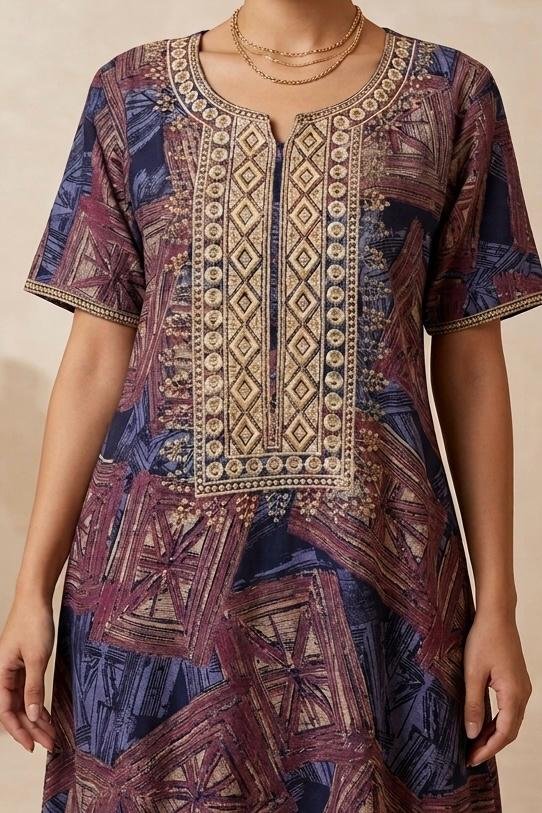 جلابيه كشميري بتطريز لون تفني كم طويل