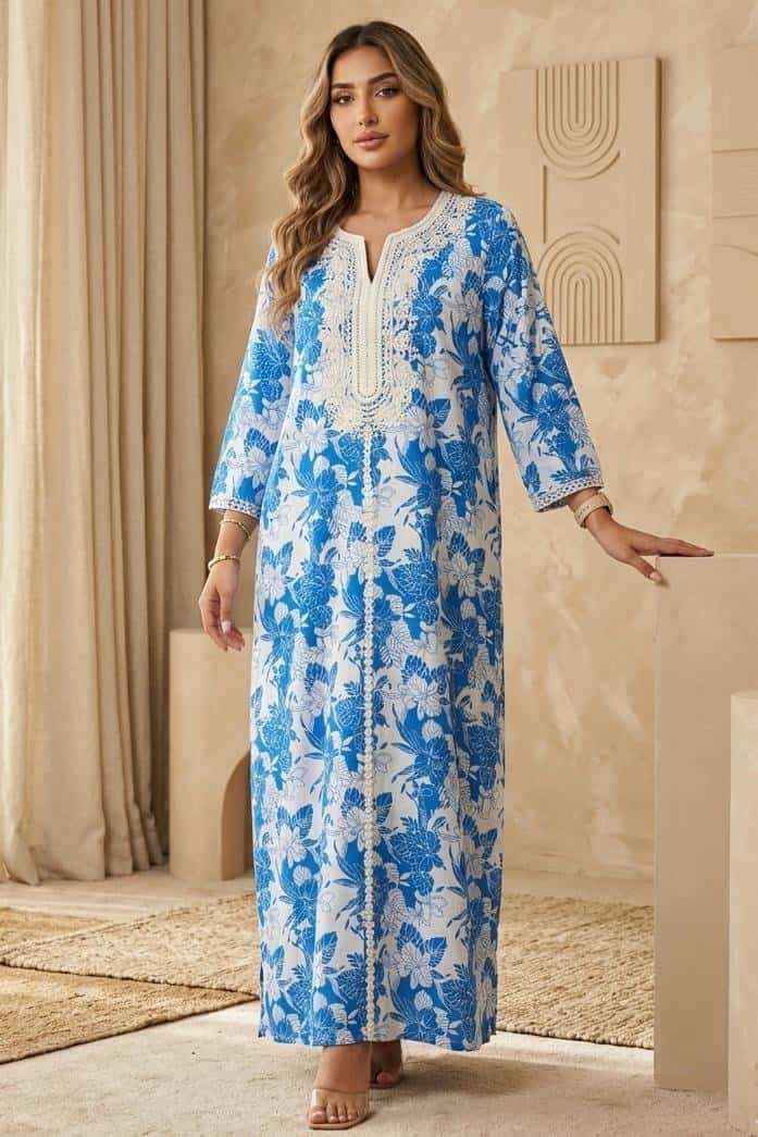 جلابيه صيفية بنقش زهور الربيع صيفية منعشة بألوان متناسقة