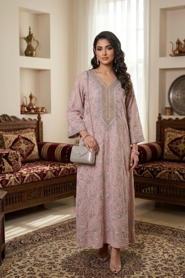 لا تفوتي الفرصة لاقتناء جلابيه فاخره لون تفني بكرستال ذهبي لامع للمناسبات التي تضمن لكِ أناقة عصرية وإطلالة تبقى في الذاكرة. احصلي عليها الآن واجعلي من كل مناسبة لحظة مميزة بامتياز!