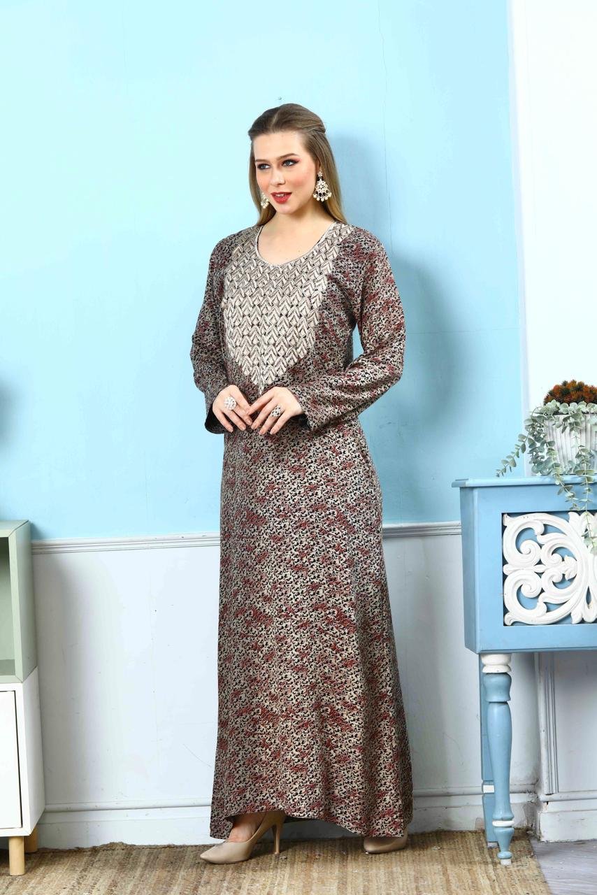 جلابيه كشميري كم طويل تركواز بفصوص ذهبي لامع