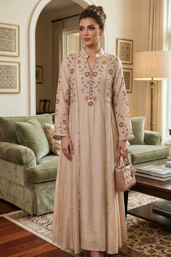 جلابيه كويتي بتطريز ناعم لون بيج