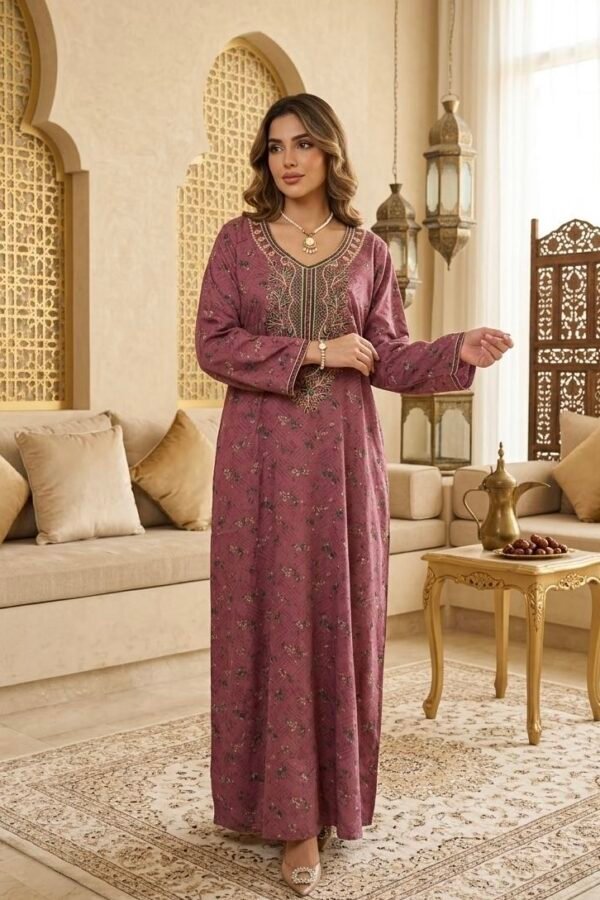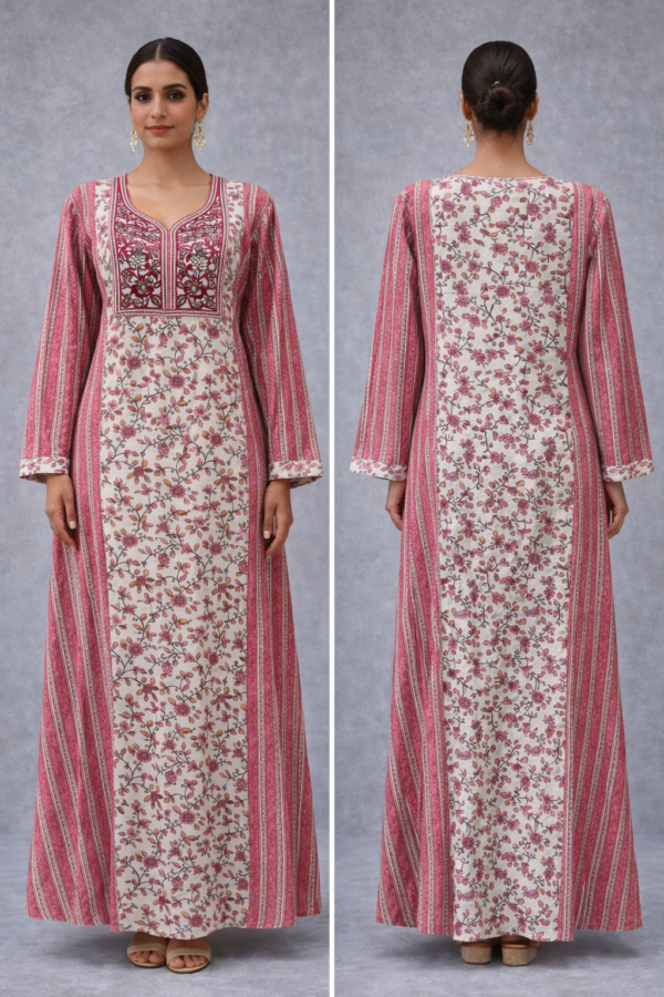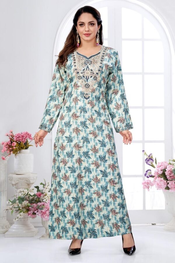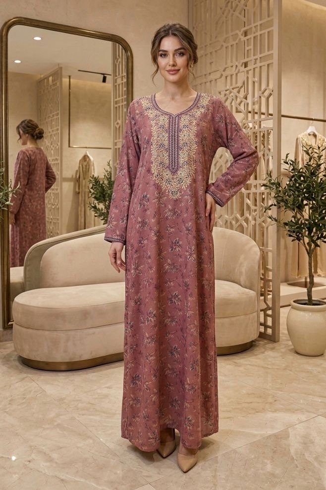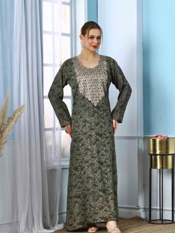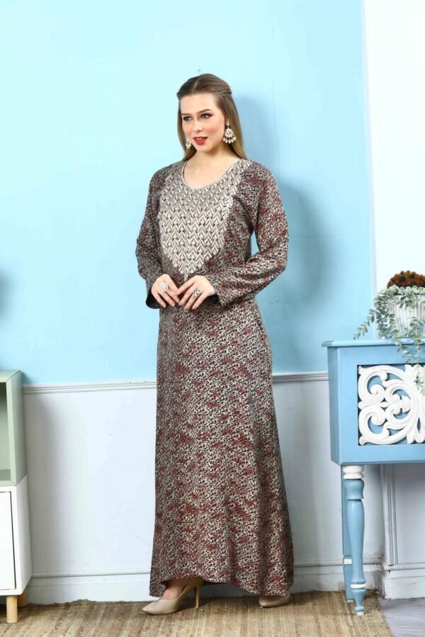 جلابيه كشميري بتطريز لون تفني كم طويل