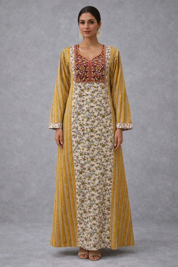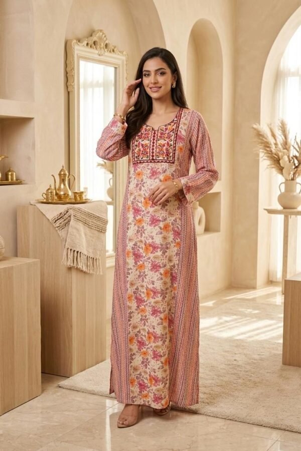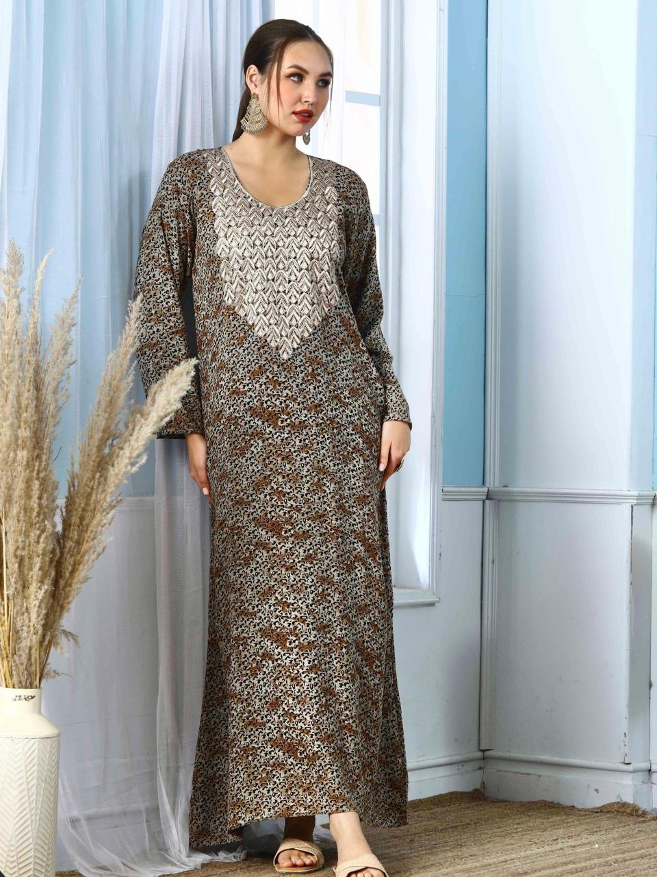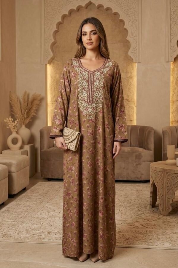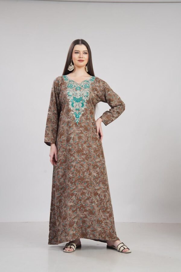 جلابيه كشميري بتطريز لون تفني كم طويل